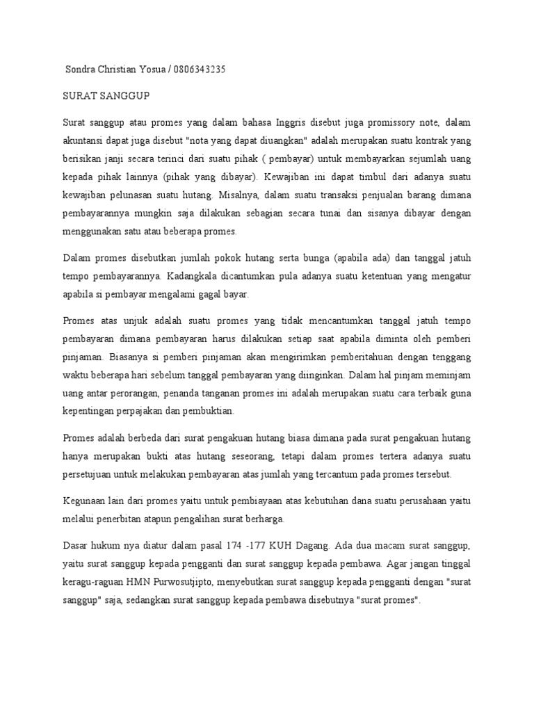 Dengan dikeluarkannya surat pernyataan ini maka saya menyatakan bersedia dan sanggup untuk melakukan beberapa hal sesuai dengan ketentuan menyatakan bahwa saya juga telah sanggup dan bersedia untuk menjalankan tugas pekerjaan yang saya emban sesuai dengan jangka waktu yang. Bedanya terletak pada pengirim dan penerima. Dalam undang undang tidak terdapat defenisi promes, namun dari sifatnya, promes dapat digolongkan ke dalam surat tagihan hutang. Berikut adalah beberapa contoh surat perjanjian hutang yang bisa anda pergunakan sebagai bahan referensi dalam menulis contoh surat yang baik dan benar. Mengenai syarat formal surat sanggup diatur dalam pasal 174 kuhd.